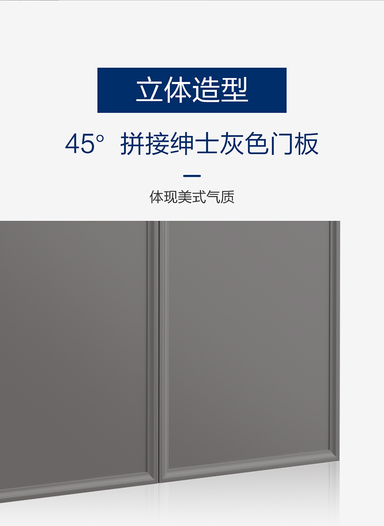 • 45°拼接紳士灰門板,體現(xiàn)美式氣質(zhì)