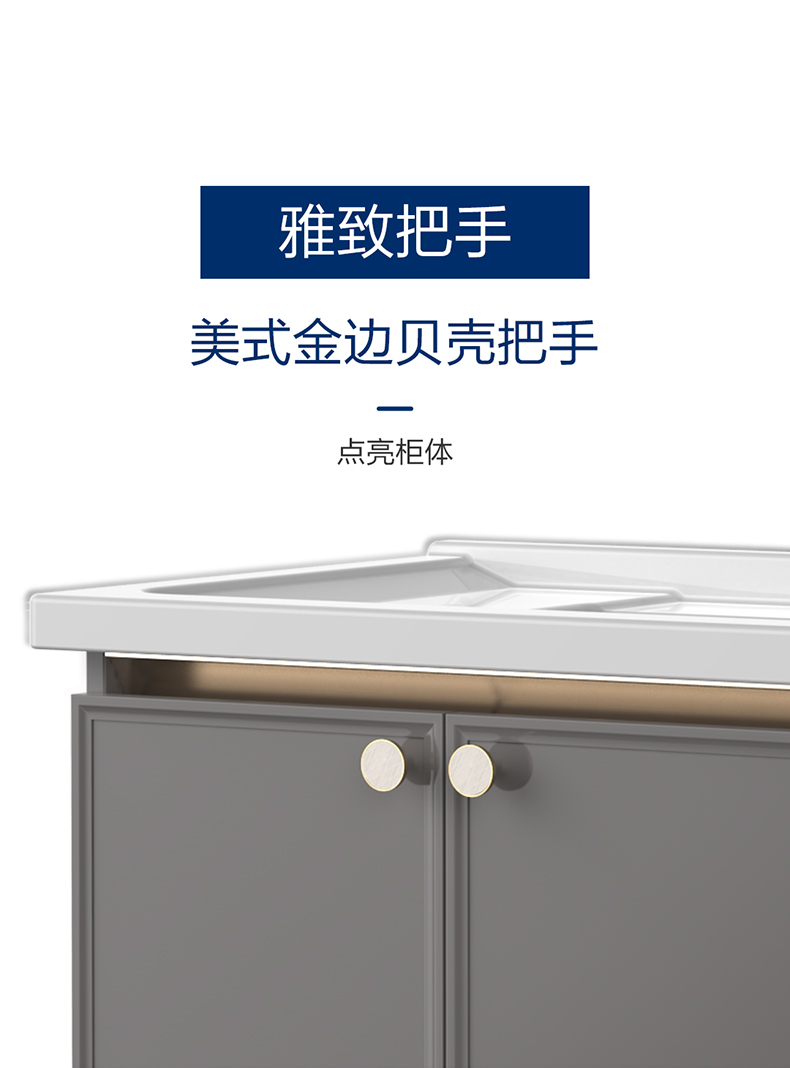 • 美式金邊貝殼把手,點亮柜體