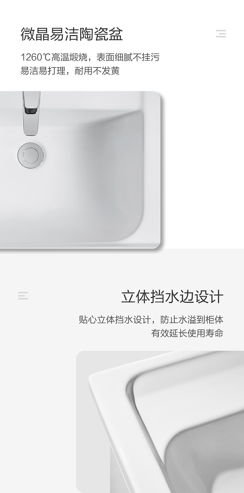 • 木合金柜體,防水防潮,隨心安放;表面覆膜工藝,3D觸感, 溫潤如木;