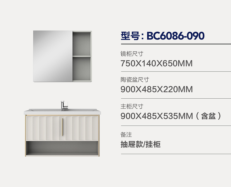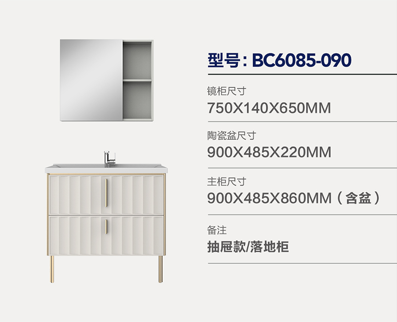 - 主柜尺寸 :900×485×860mm( 含盆 )