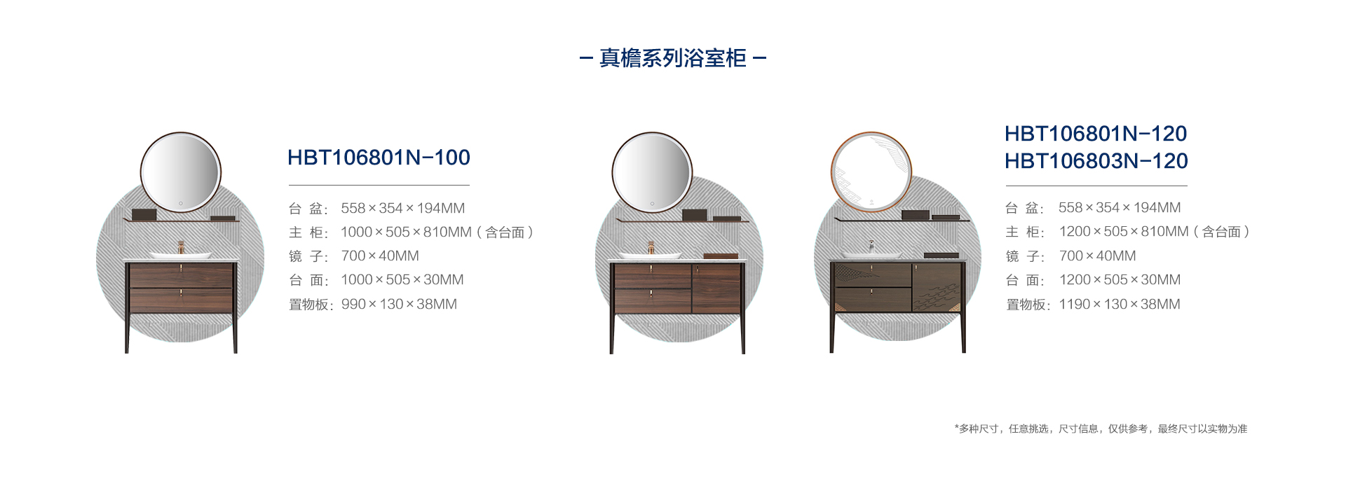 HBT106803N-120  (經典胡桃木色)實木浴室柜