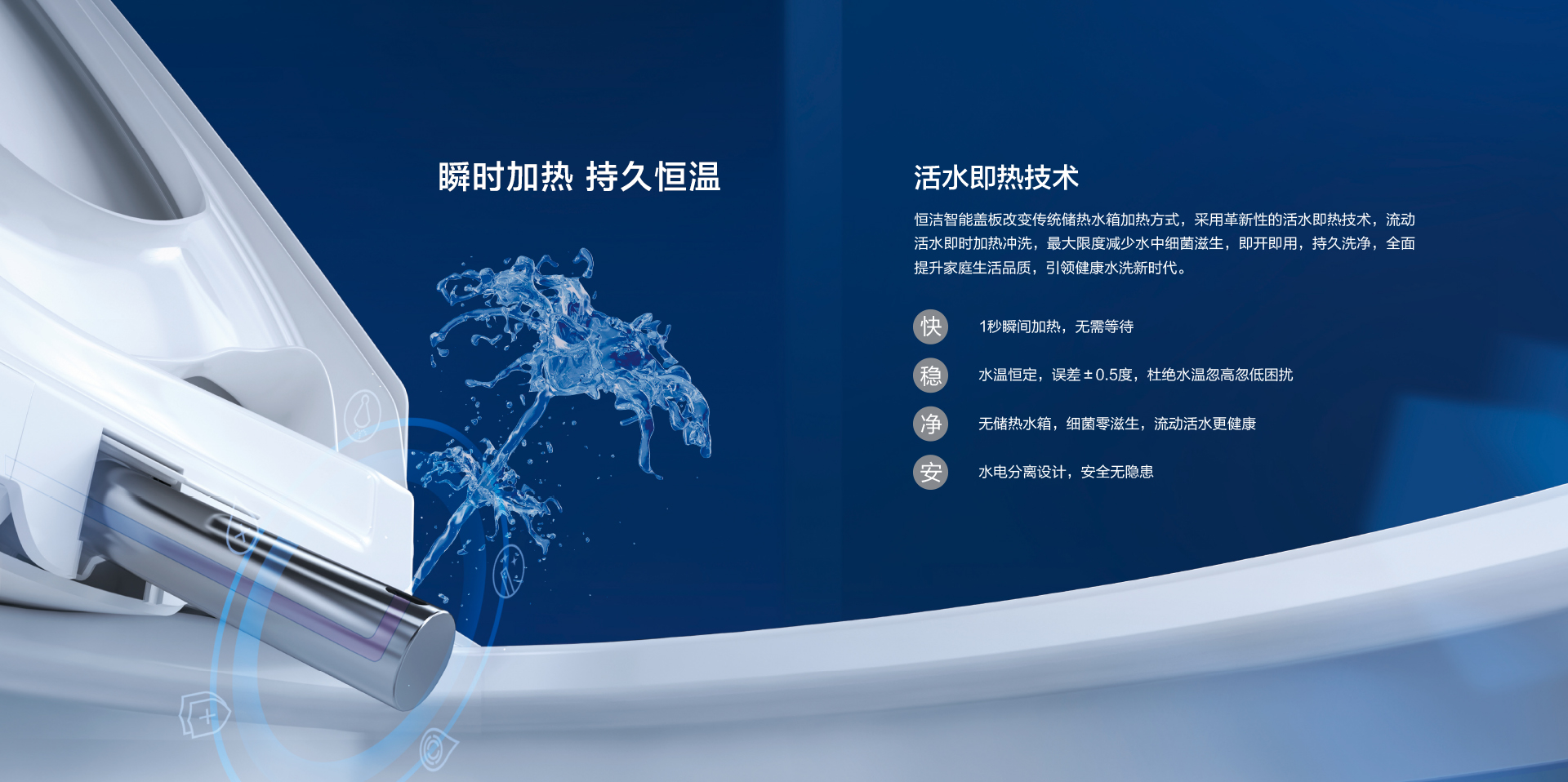 活水即熱,瞬間加熱,持久恒溫